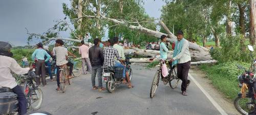 अहरौरा, मिर्जापुर। अहरौरा जमुई रोड पर स्थित चौकिया गांव के सामने बुधवार को लिपटस का पेड़ गिरने के कारण रोड ब्लाक हो गया और आवागमन पुरी तरह बंद हो गया। मौके पर उपस्थित समाजसेवी गोपाल दास गुप्ता ने पेड़ गिरने की जानकारी तत्काल रेंजर आनंद शेखर उपाध्याय को दिया इस पर रेंजर ने बन विभाग के कर्मचारियों को मौके पर भेजकर पेड़ की डालियों को कटवा कर आवागमन शुरु कराया। इस बीच सड़क पर वाहनों की कतार लग गई। लगातार हो रही बरसात के कारण जमीन नम होने एव दोपहर में आई हल्की हवा से अहरौरा जमुई रोड के किनारे लगाया गया एक विशाल पेड़ अहरौरा जमुई रोड पर स्थित चोकिया गांव के सामने गिर गया जिससे रोड पुरी तरह बंद हो गया और रोड पर लम्बा जाम लग गया लोग काफी देर तक परेशान हुए मौके पर पहुंची बन विभाग की टीम ने पेड़ की डालियों को कटवा कर आवागमन शुरु कराया।