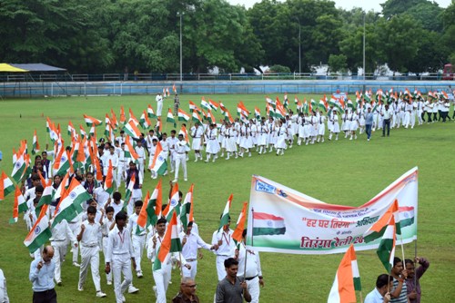 सोनभद्र, सिंगरौली।  भारत सरकार के दिशा-निर्देशानुसार 79 वें  स्वतंत्रता दिवस के अवसर पर सम्पूर्ण भारत में हर घर तिरंगा अभियान  चलाया जा रहा है । इसी कड़ी में एनटीपीसी विंध्याचल द्वारा परियोजना के अंबेडकर स्टेडियम में स्वतंत्रता दिवस के उपलक्ष में हर घर तिरंगा अभियान के तहत तिरंगा रैली का आयोजन किया गया, जिसमें सीआईएसएफ के जवानों एवं परियोजना परिसर में स्थित सभी विद्यालयों के छात्र-छात्राओं नें बड़ी संख्या में तिरंगे के साथ बढ़-चढ़ कर भाग लिया। इस दौरान पूरा स्टेडियम तिरंगामयी हो गया।