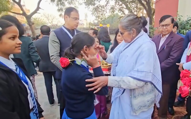 माध्यमिक शिक्षा मंत्री ने इस अवसर पर छात्राओं को टीका चंदन करते हुए पेड़ा खिलाकर मुह मीठा कराया गया।