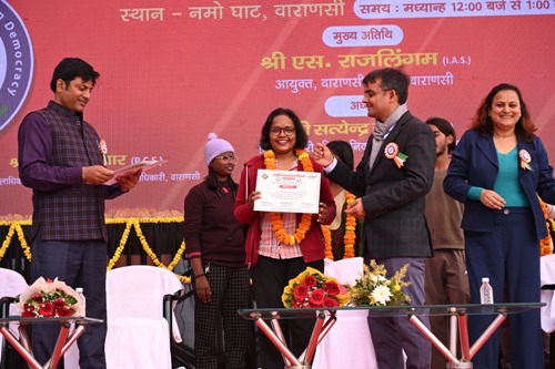 जिलाधिकारी द्वारा नियति सिंह, अर्चना सिंह व दिव्यांशु पोद्दार को मतदान का अधिकार मतकार्ड दिया गया। वरिष्ठ मतदाताओं, ट्रांसजेंडर व दिव्यांगजन जिन्होंने लोगों को मतदान हेतु लगातार प्रेरित किया को भी प्रमाणपत्र देकर सम्मानित किया गया। मतदाता जागरुकता हेतु सांस्कृतिक कार्यक्रम आर्य महिला इंटर कॉलेज की बच्चियों द्वारा “वोट पर्व मेले में मतदान हम करेंगे”, जगतपुर पीजी कालेज की छात्राओं द्वारा “मैं भारत हूं” तथा जागरूकता नृत्य कस्तूरबा बालिका इंटर कॉलेज की बच्चियों द्वारा “गुईया चलो छैया चुनाव करूं” प्रस्तुत किया गया। आर्य महिला इंटर कॉलेज की विद्यार्थियों को फेस पेंटिंग के लिए भी सम्मानित किया गया। रंगोली प्रतियोगिता में आर्य महिला इंटर कॉलेज की बच्चियों को, द्वितीय स्थान हरिश्चन्द्र इंटर कॉलेज तथा तृतीय स्थान जगतपुर कॉलेज की बच्चियों को दिया गया। मेंहदी प्रतियोगिता में जगतपुर कॉलेज की बच्चियों को प्रथम स्थान प्राप्त हुआ। पोस्टर प्रतियोगिता में पीएम श्री बालिका इंटर कॉलेज की बच्चियों को प्रथम स्थान का प्रमाणपत्र देकर जिलाधिकारी द्वारा सम्मानित किया गया। जिलाधिकारी द्वारा मतदान हेतु हस्ताक्षर अभियान की शुरुआत की गयी।