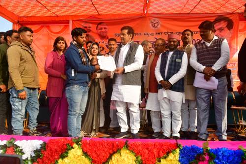 रोजगार मेला में मंत्री श्री शर्मा ने चयनित अभ्यर्थियों प्रीति कुमारी, अंशु कुमार, अशोक कुमार, सुनील कुमार यादव, अनिल कुमार, रोशन कुमार, अर्जुन सोनकर एवं सुनील सोनकर आदि को नियुक्ति प्रमाण पत्र प्रदान किए। इसके साथ ही प्रधानमंत्री महिला आवास योजना के अंतर्गत लाभार्थियों गिरिजा देवी, तेतरी, वेद प्रकाश साहनी, माधुरी ममता, तारा देवी, सीमा मौर्य, महिमा भारती आदि को स्वीकृति प्रमाण पत्र वितरित किए। कार्यक्रम के प्रारंभ में मंत्री श्री शर्मा ने विभिन्न कंपनियों द्वारा लगाए गए स्टालों का निरीक्षण किया। रोजगार मेला में राया हेल्थ केयर प्राइवेट लिमिटेड (मऊ), गतिमान एग्रो फॉरेस्ट्री प्राइवेट लिमिटेड, अशोक लीलैंड (रुद्रपुर, उत्तराखंड), जेएमआर प्राइवेट लिमिटेड, याजकी प्राइवेट लिमिटेड, उत्तर प्रदेश परिवहन निगम (मऊ), पेरिग्रीन सिक्योरिटी प्राइवेट लिमिटेड (लखनऊ) सहित कई प्रतिष्ठित कंपनियों के अधिकारियों एवं प्रतिनिधियों ने प्रतिभाग किया। इस अवसर पर स्थानीय जनप्रतिनिधि, प्रशासनिक अधिकारी, बड़ी संख्या में अभ्यर्थी एवं स्थानीय महिलाएं उपस्थित रहीं।
