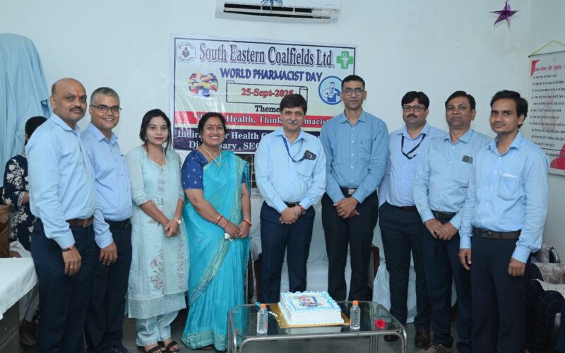 विलासपुर।एसईसीएल इंदिरा विहार डिस्पेंसरी में प्रमुख (चिकित्सा सेवाएँ) डा. श्रुतिदेव मिश्रा के मुख्य आतिथ्य, इंदिरा विहार स्वास्थ्य केंद्र प्रभारी डा. अरिहंत जैन के विशिष्ट आतिथ्य, एसईसीएल मुख्यालय के सभी चिकित्सकों, पैरा मेडिकल स्टाफ, समस्त कर्मचारियों एवम स्टाफ की उपस्थिति में “थिंक हेल्थ, थिंक फार्मासिस्ट” थीम पर “विश्व फार्मासिस्ट दिवस” मनाया गया ।