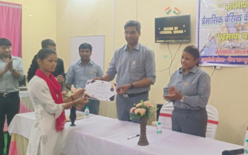 प्रमाण पत्र वितरण कार्यक्रम के सफल आयोजन में CSR अधिकारी रोहित श्रीवास्तव की अहम भूमिका रही। इस अवसर पर ओमप्रकाश, आयुष कुमार सहित अन्य गणमान्य लोग उपस्थित रहे।